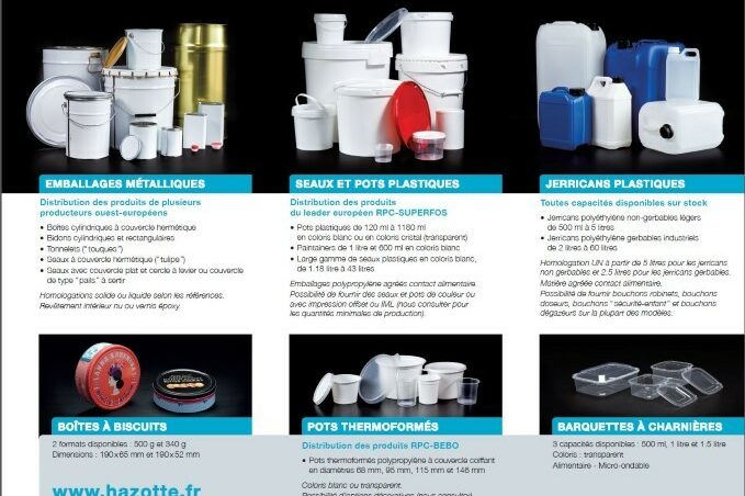 Hazotte Emballages industriels Si cette newsletter ne s’affiche pas correctement, cliquer ici newsletter n°12 SEAUX PLASTIQUES : un nouveau service à votre disposition Retrouvez ici les fiches techniques de toute la gamme de seaux plastiques actuellement disponibles en stock lire la suite… JERRICANS PLASTIQUES 60 LITRES Une alternative économique et pratique aux fûts…